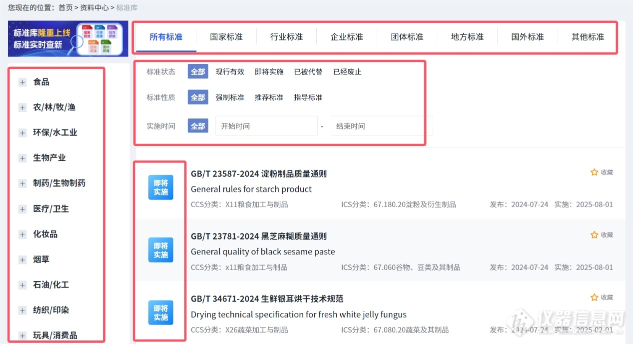 仪器信息网标准库 (https://www.instrument.com.cn/standard/ )于 2024 年 10 月正式上线。标准库含有食品、环境、医药卫生、石油化工、钢铁金属、地质矿产等20多个领域十几万标准,涉及国家标准、行业标准、团体标准、地方标准及企业标准。标准库有便捷的查询系统,可以实时标准查新,为采购正版标准提供渠道,支持多端访问,方便随时随地查阅标准信息。